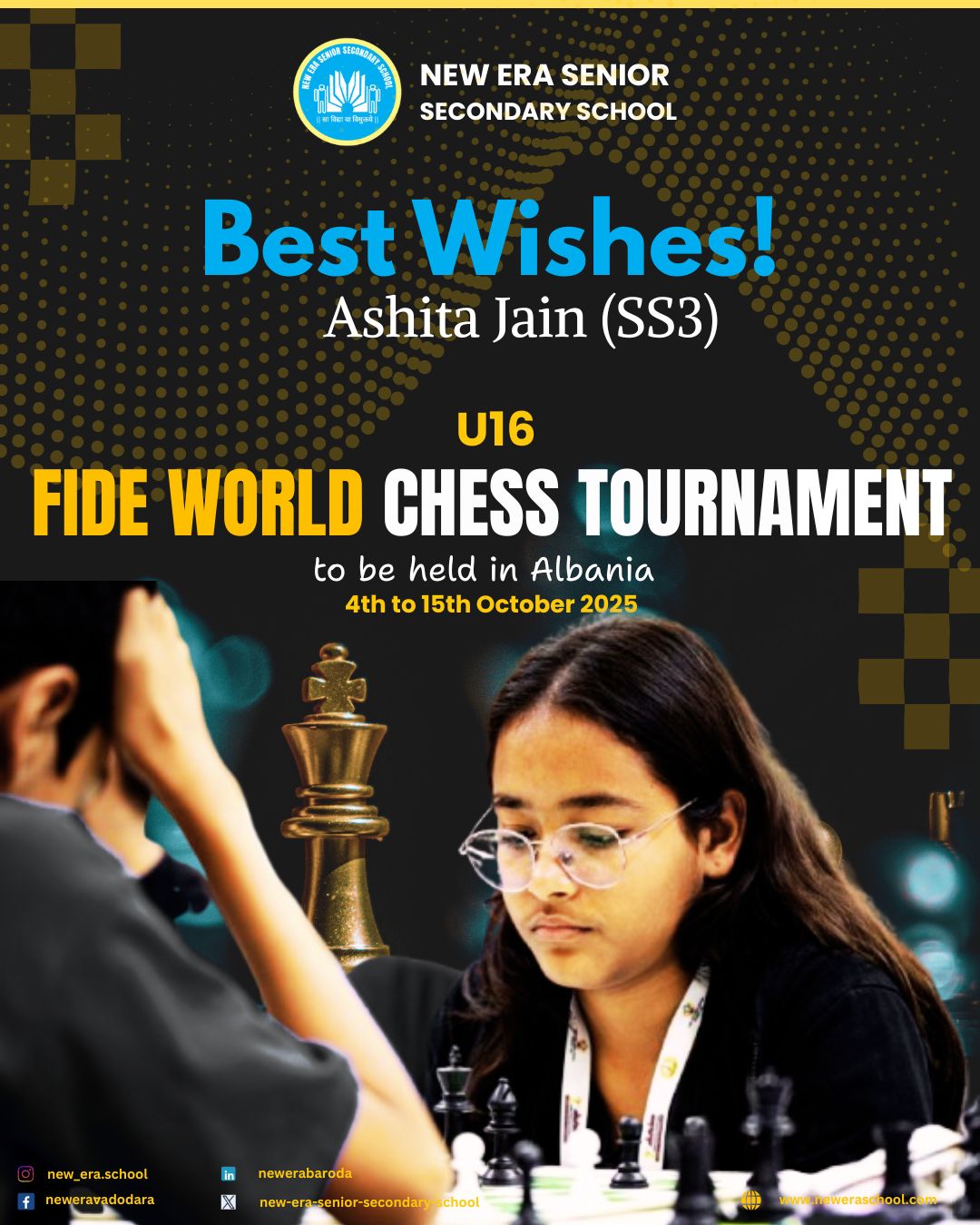 The New Era Family is proud to cheer for Ashita Jain (SS3) as she represents at the U16 FIDE World Chess Tournament in Albania from 4th to 15th October 2025.
