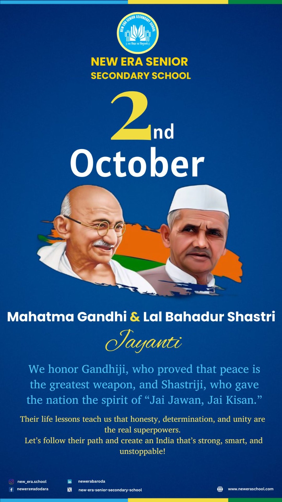 The New Era Family pays heartfelt tribute to Lal Bahadur Shastri and Mahatma Gandhi on their birth anniversaries. May their ideals of truth, non-violence, simplicity, and service to the nation continue to inspire us all.