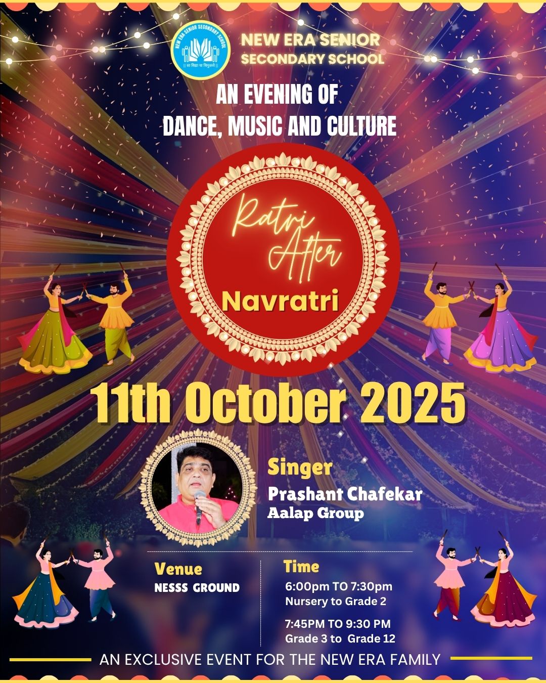 The festive spirit continues at New Era Senior Secondary School with Ratri After Navratri a celebration filled with rhythm, joy, and togetherness!