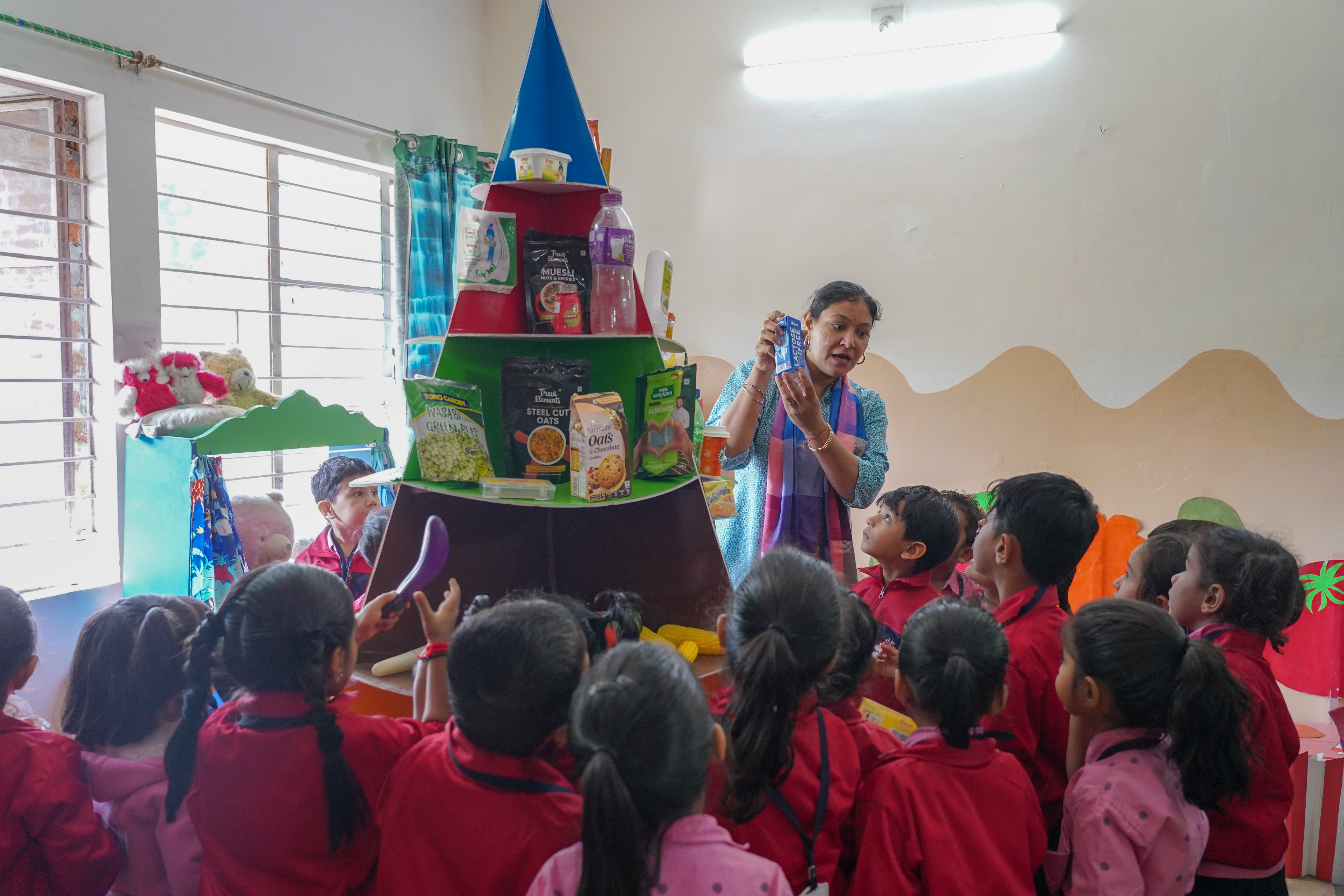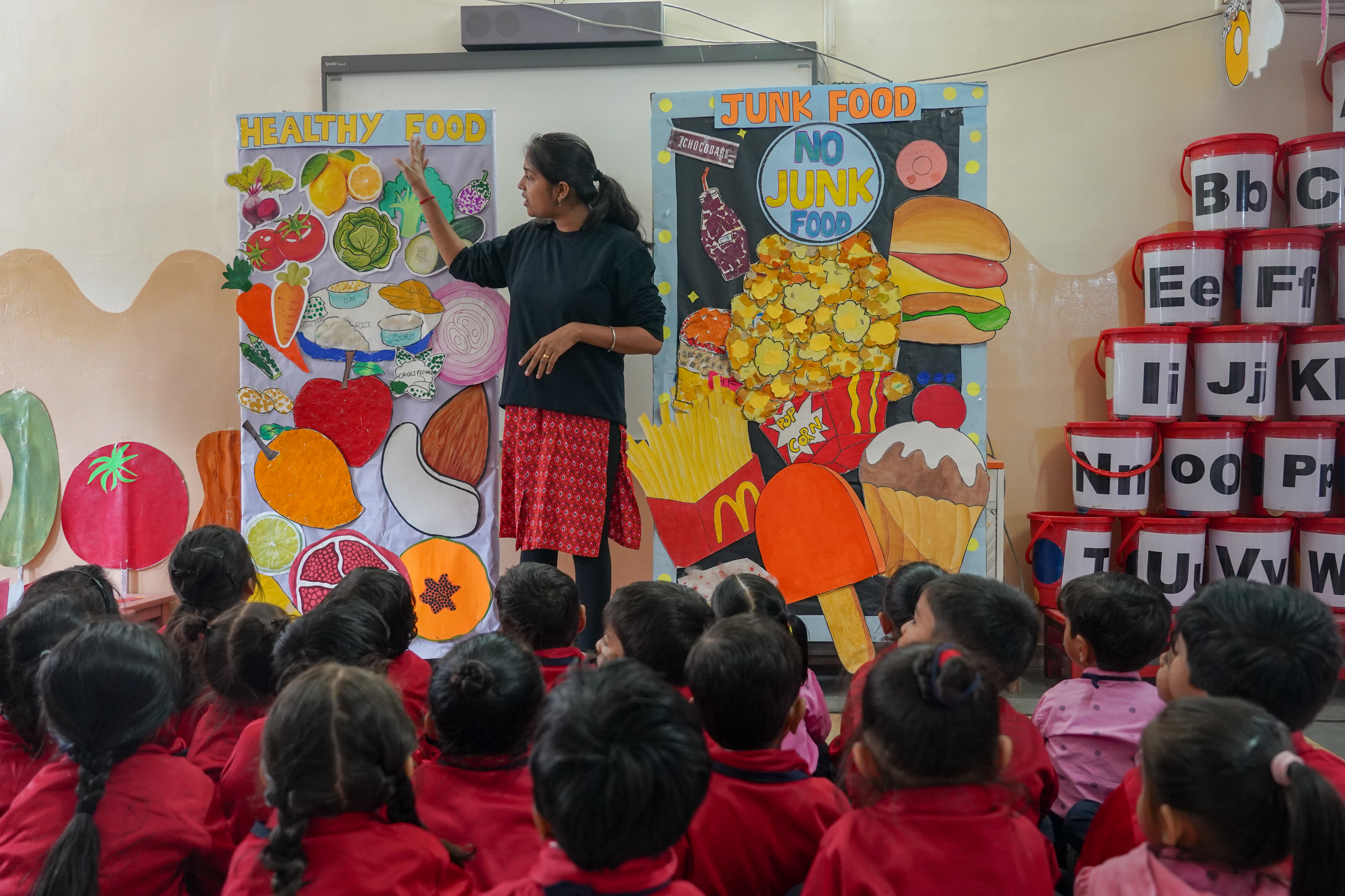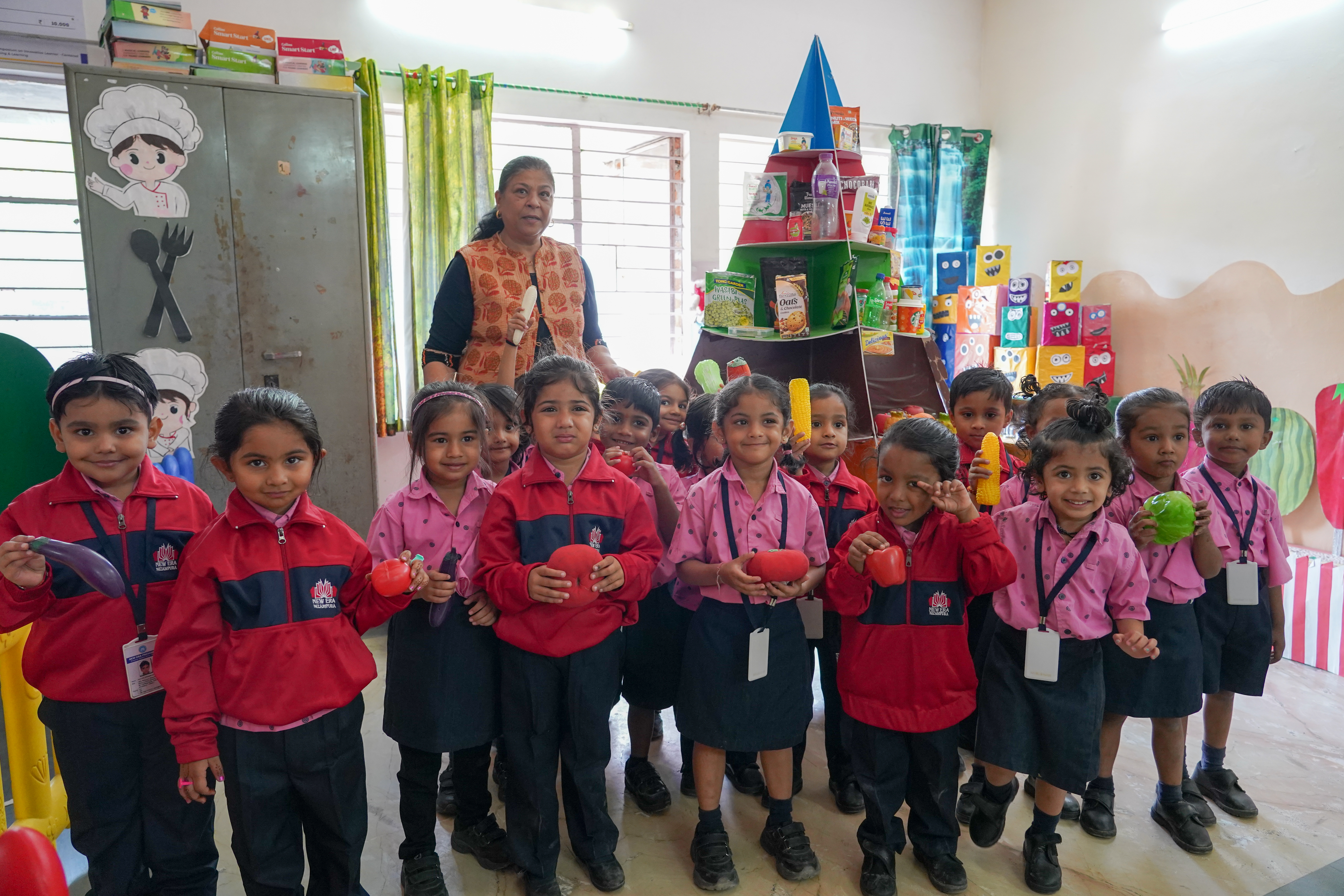 Our little FS1 learners stepped into a colourful Food Corner created specially to explore the world of food. The space turned into a mini universe of yummy learning filled with food packets, containers, fresh fruits, vegetables, and vibrant pictures.