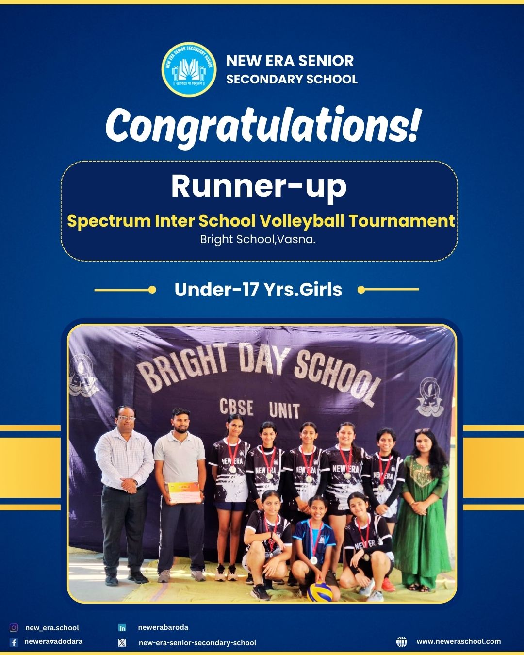 Congratulations to NESSS’s U17 Girls’ Volleyball Team for finishing as Runner-ups at the Spectrum Interschool Competition at Bright School, Vasna! Your teamwork, discipline, and passion truly stood out. Proud of our athletes Panthi, Reeva, Prisha, Sakshi, Rashi, Hirva, Vidhi, and Saanvi. Keep rising! #NESSS #VolleyballChampions #SchoolSports #RisingTalent #GirlsInSports #ProudSchool #SpectrumCompetition #StudentAthletes