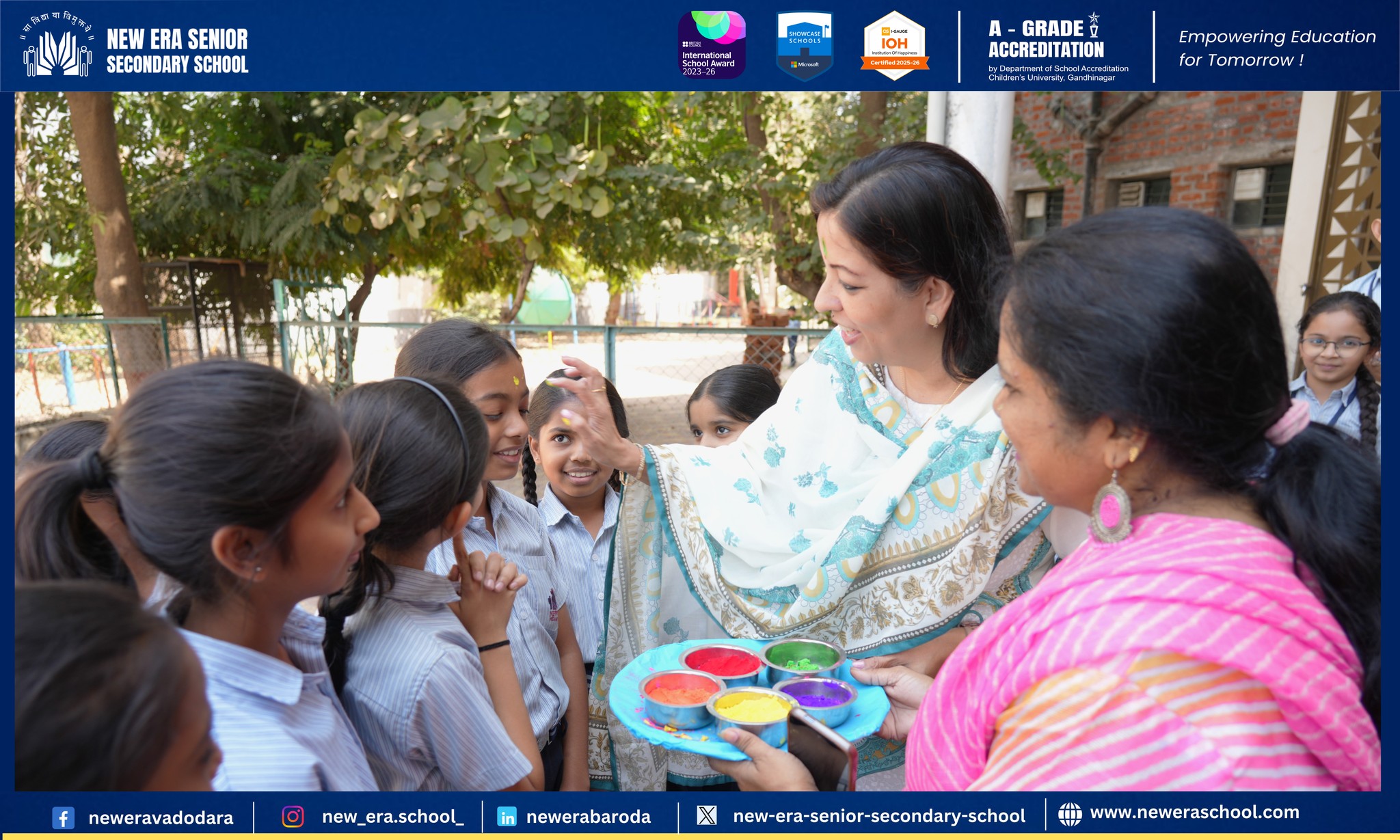 At New Era School, Holi is more than colours it’s a celebration of joy, friendship, and togetherness.