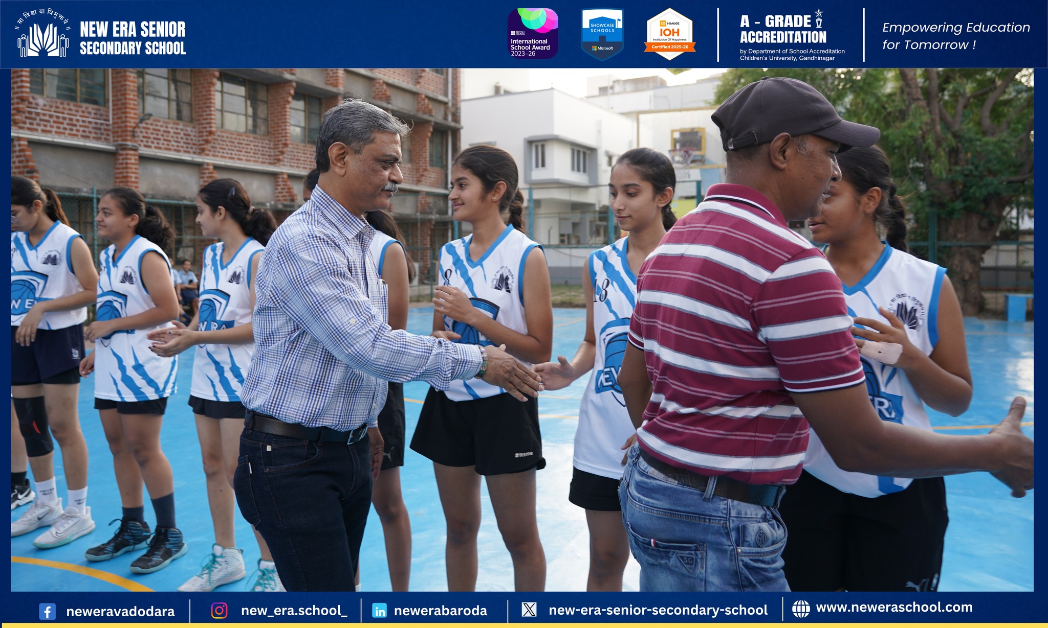 NESSS, in collaboration with the Baroda District Basketball Association, proudly hosted the inauguration ceremony of the ASMITA Basketball League 2025–26 on 18th March 2025. Six dynamic school teams NESSS, Cygnus, Urmi, Gujarat Public School, Navrachana School Sama, and NISV participated in this exciting event.