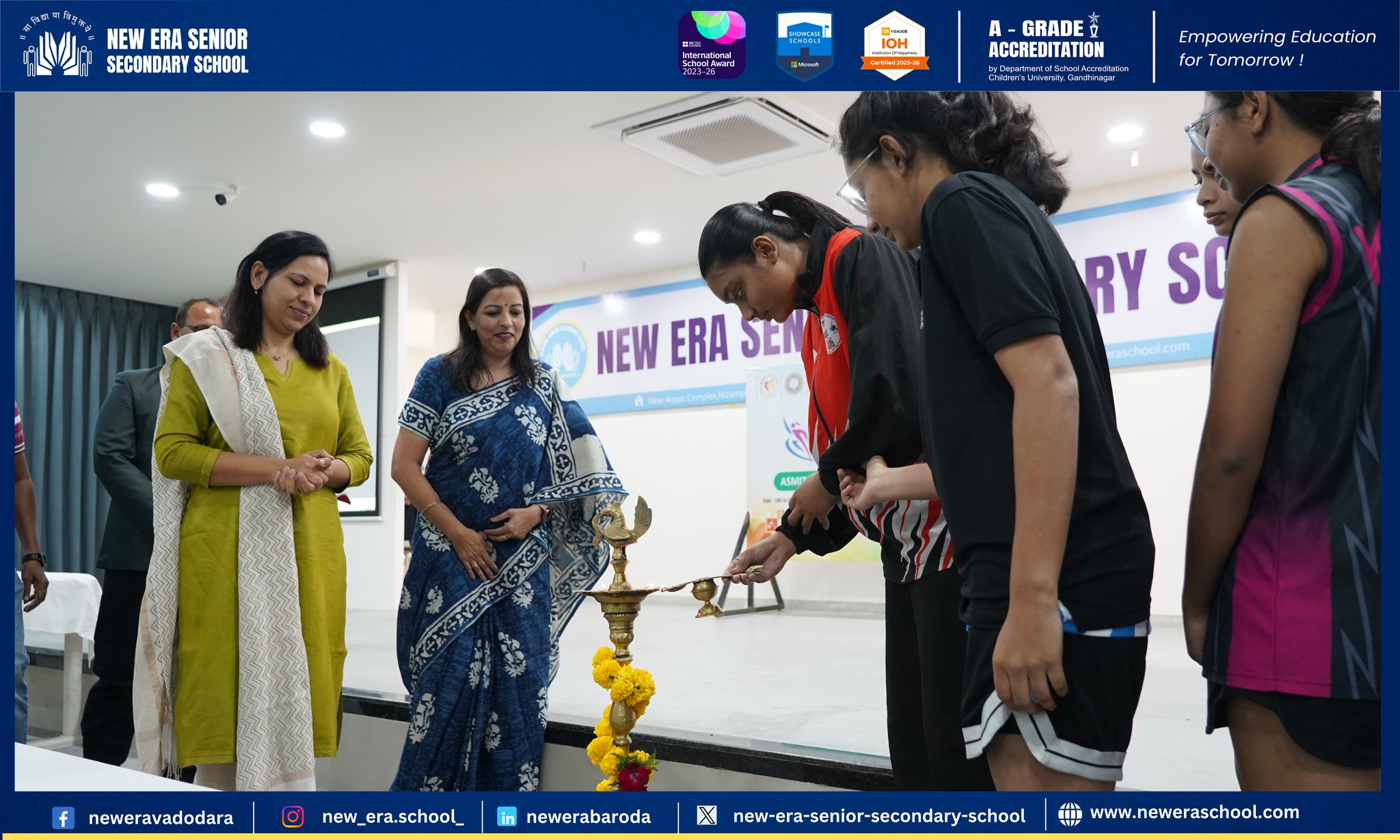 The event was graced by esteemed dignitaries, with Dr. Geetika Madan Patel as the Chief Guest, along with Mr. Nehal Ramani, Secretary of the Baroda District Basketball Association, and the Principal of NESSS, Mrs. Leena Nair.