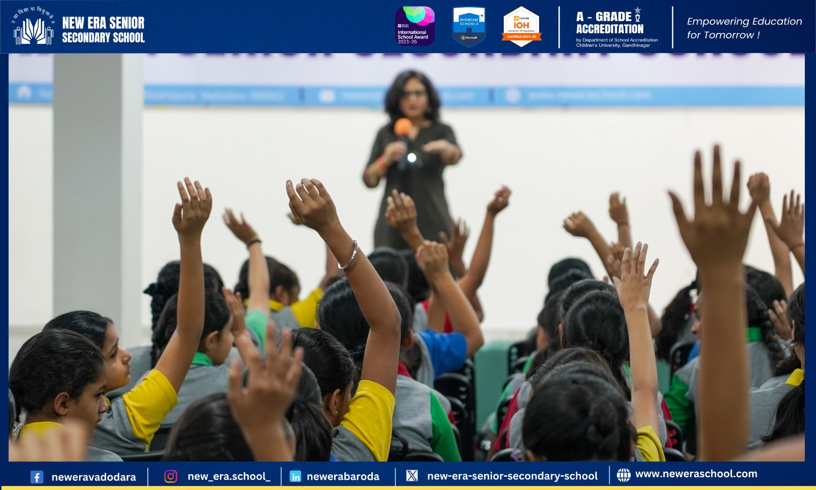 New Era Senior Secondary School organized an insightful session on “Changes & Courage: Embracing Your Body’s Journey” for girls of Grades 5, 6, and 7. The session was led by Shilpa Rao, Founder of Vyra Sanitary Napkins, who thoughtfully demystified the biological process of menstruation in an age-appropriate and reassuring manner.