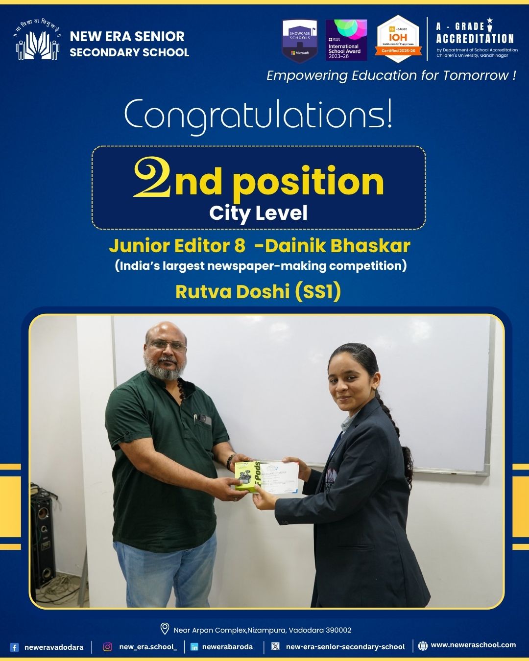 NEW ERA SCHOOL BECOMES THE FIRST SCHOOL IN GUJARAT TO BE ACCREDITED WITH AN “A” GRADE...Read More