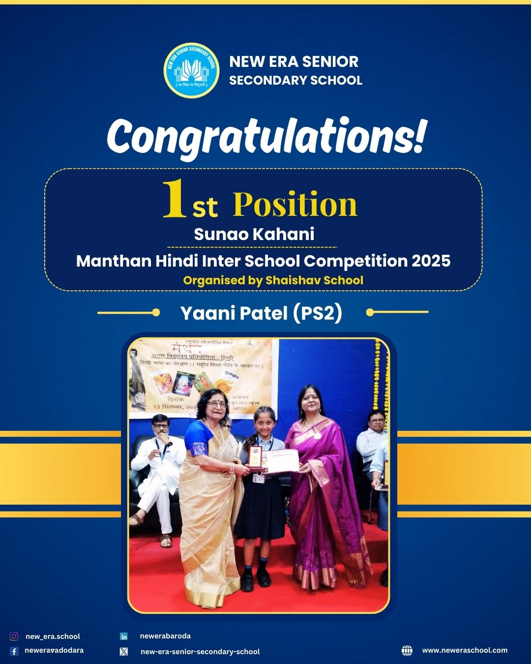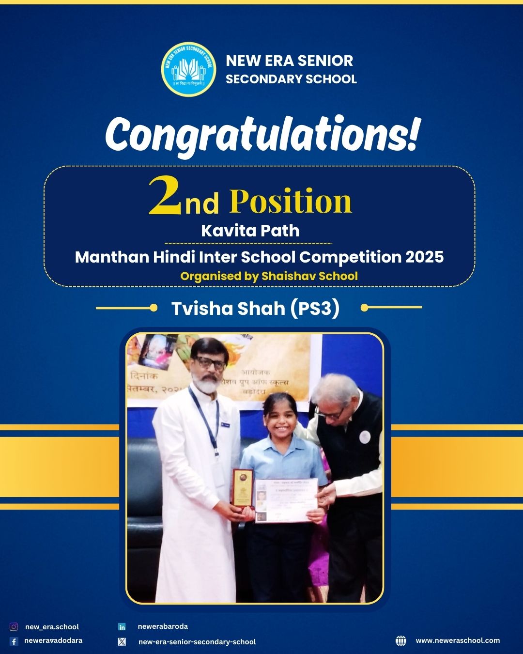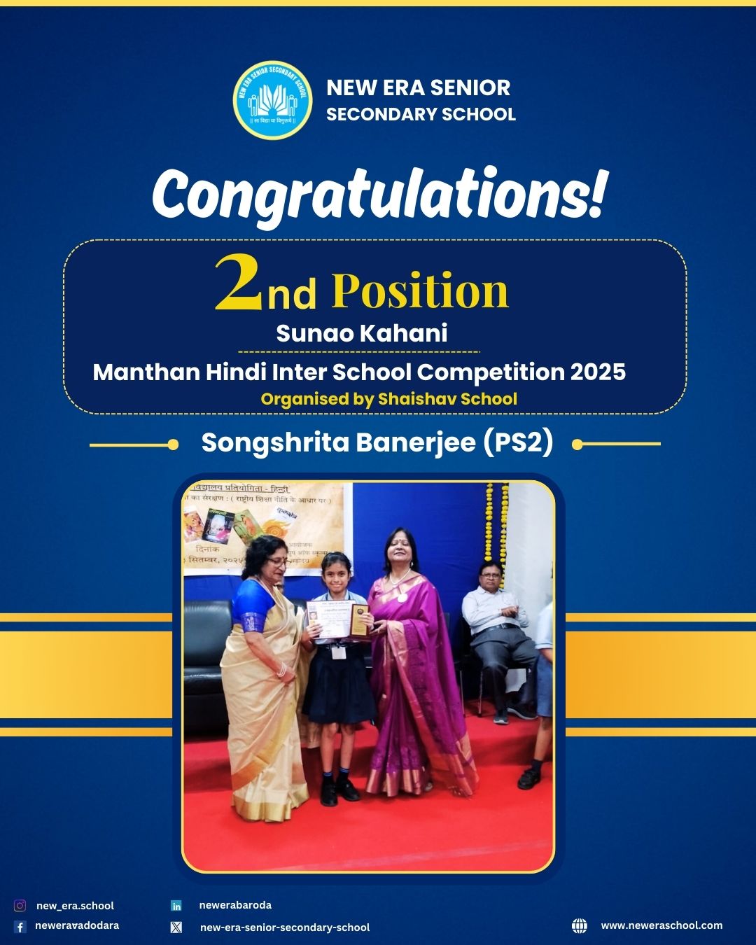 A big round of applause to all our talented participants and heartfelt appreciation to the Hindi Department for their constant guidance and efforts. #NewEraSchool #StudentAchievements #ManthanCompetition #HindiLiterature #Storytelling #KavitaPath #ProudMoment #youngtalents