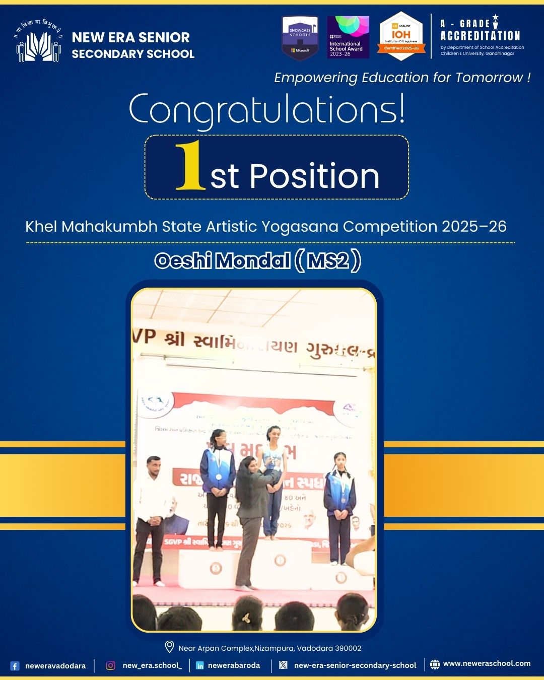 #StudentAchievement #KhelMahakumbh #ArtisticYogasana #NewEraPride #ExcellenceInAction