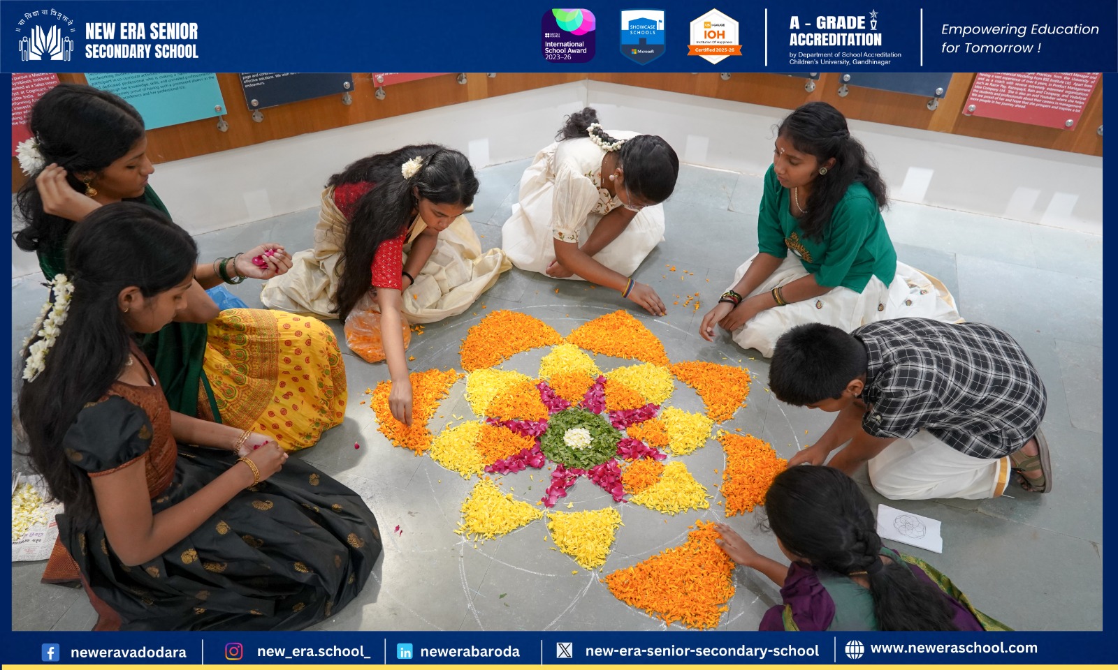 Our Bengali students added a special touch by crafting intricate rangoli using rice flour, beautifully showcasing their cultural heritage.
